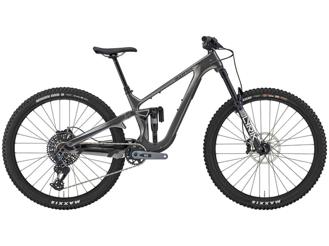 Chainrings 32t FRAME MATERIAL Kona DH Carbon 153mm Travel Rear Shock RockShox Super Deluxe Ultimate Trunnion Fork RockShox Lyrik Ultimate RC2 Charger 3 DebonAir+ w/ButterCups 160mm Tapered 110mm Spacing Crankarms SRAM GX Eagle Transmission Chainrings 32t B/B SRAM DUB PF92 Wide Pedals n/a Chain SRAM GX Eagle Transmission Freewheel SRAM GX Eagle Transmission 10-52t 12spd Chainguide n/a F/D n/a R/D SRAM GX Eagle Transmission Shifters SRAM AXS Pod Controller Brake Calipers SRAM G2 RSC Front Brake Rotor SRAM Centerline 200mm Rear Brake Rotor SRAM Centerline 200mm Brake Levers SRAM G2 RSC Headset FSA Orbit 1.5 E ZS Handlebar Kona XC/BC 35 Stem Kona XC/BC 35 Seatpost Rock Shox Reverb w/1x Remote Lever 31.6mm Seat Clamp Kona Clamp Grips Kona Key Grip Saddle WTB Volt Front Hub DT Swiss 350 110x15mm Rear Hub DT Swiss 350 148x12mm Spokes Stainless Black 14g Rims WTB KOM Trail i30 TCS Front Tire Maxxis Assegai EXO+ TR 3C 29x2.5" WT Rear Tire Maxxis Minion DHR II EXO+ TR 3C 29x2.4" WT (27.5x2.4" WT size S) Paint Color Gloss Faux Dark Chrome w/ Satin Lead Decals